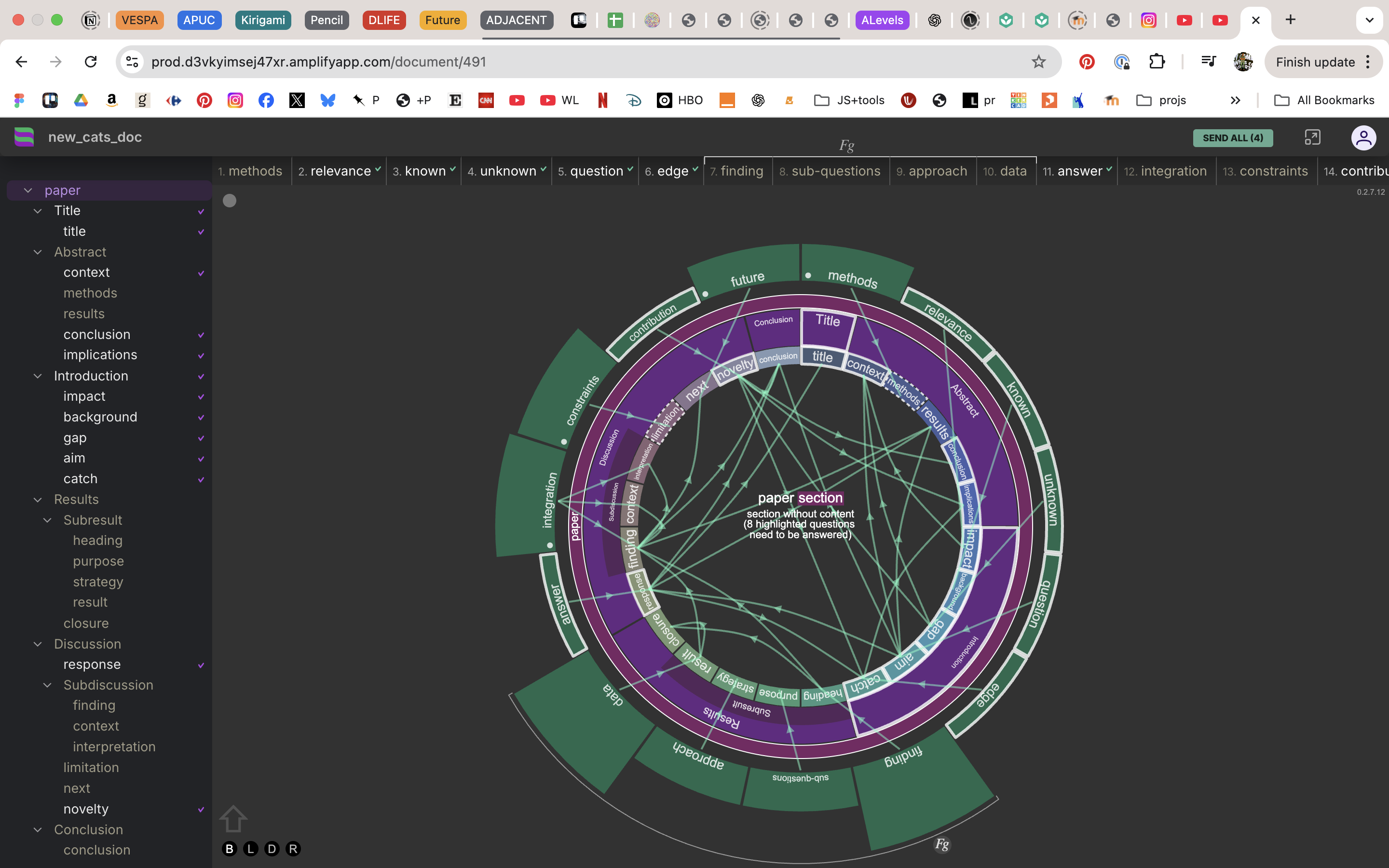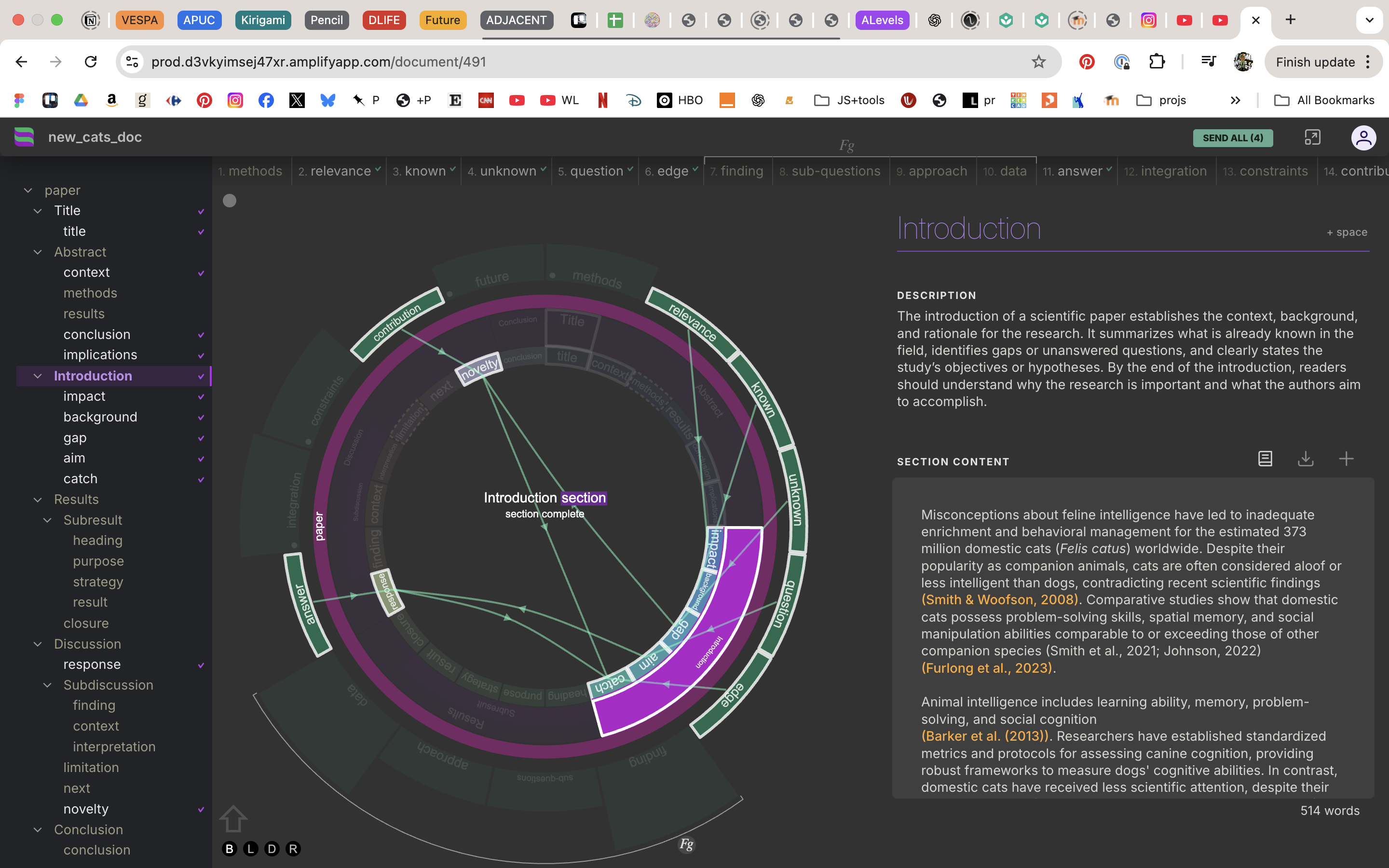 Adjacent is currently collaborating with Kirigami developing an app for Academic Papers writing. Based on a unique methodology for writing based on answering core questions, the system generates papers without modifying the key information while taking care of format and structure. The method is on itself a network of information flows that can be explored through our Kirigami Interactive map.